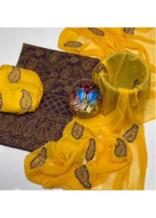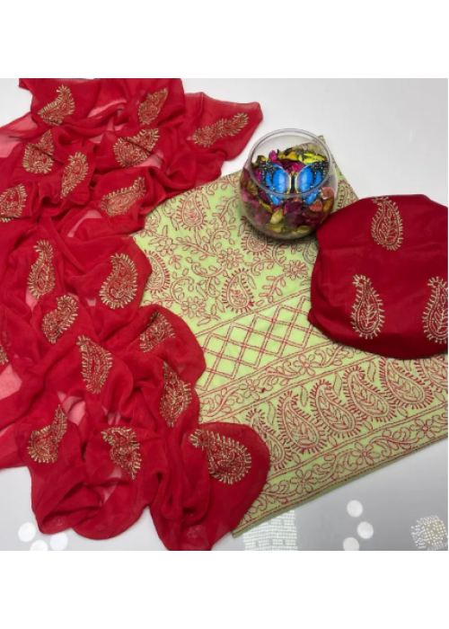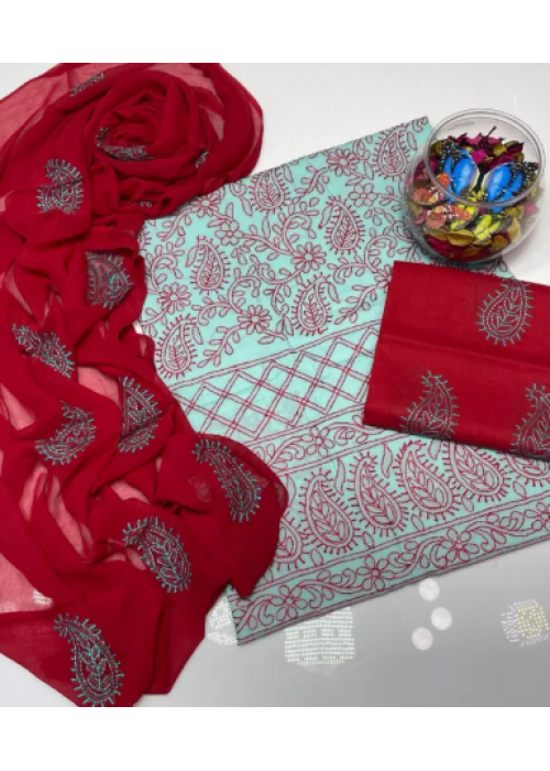 Product details of Lawn cotton collections Shirt chicken kari jall Chiffon Dupatta +trouser pr Embroidery -Hand made 3piece suit for women